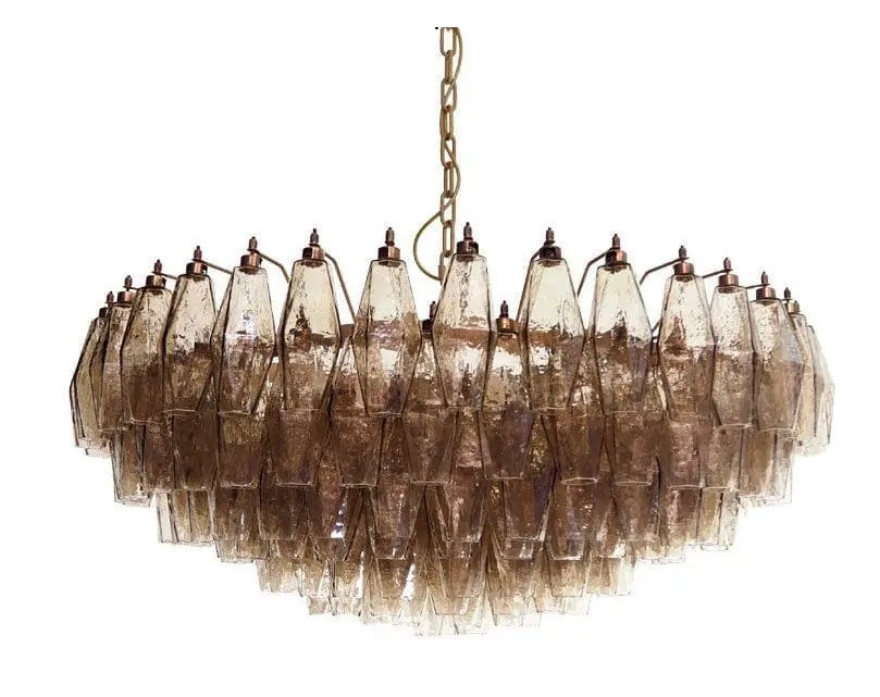 Żyrandol składa się z 185 szklanych elementów. Przydymione szkło dodaje wnętrzu tajemniczego uroku i elegancji.