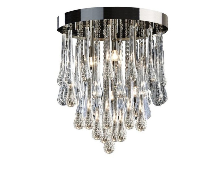 Każda kropla została ręcznie uformowana przy użyciu tradycyjnej, wielowiekowej techniki murano, tworząc efekt szklanej kaskady przypominającej spadającą wodę.