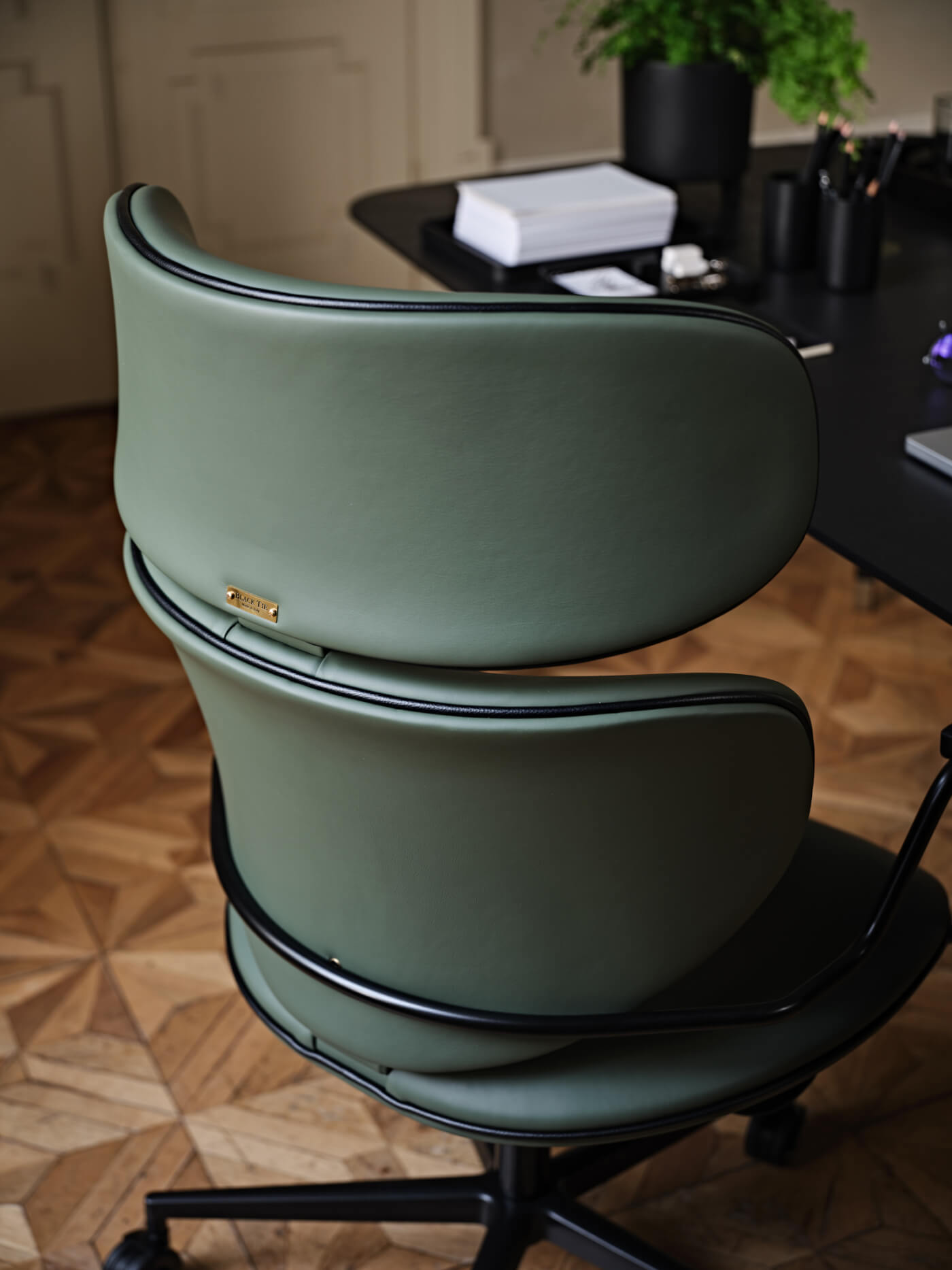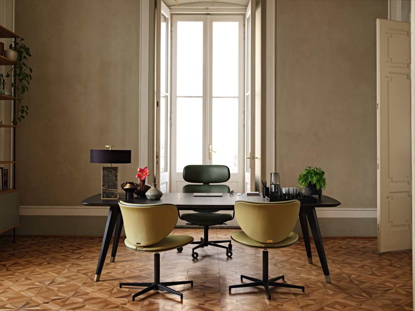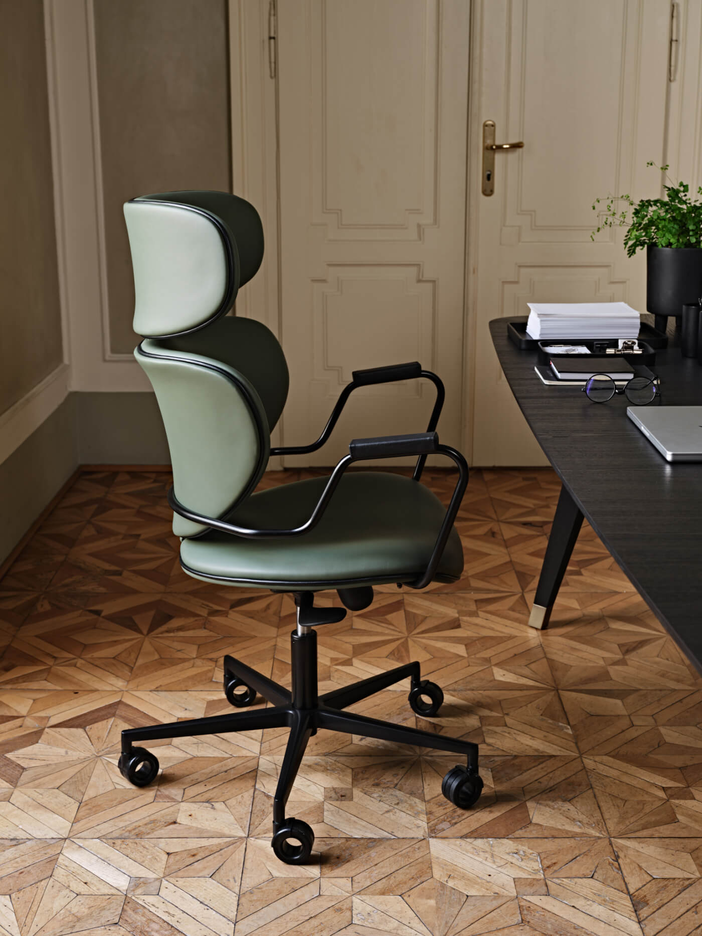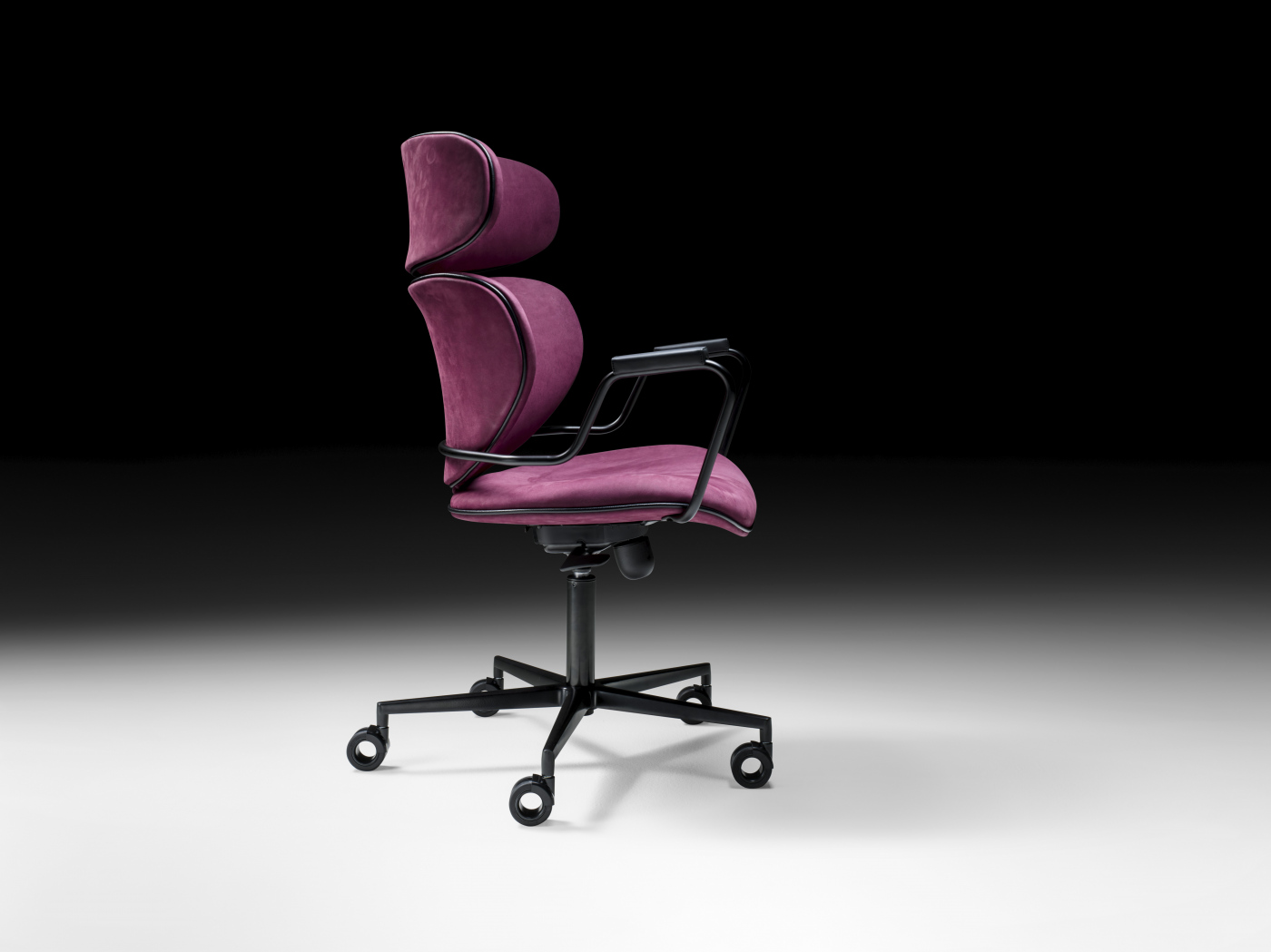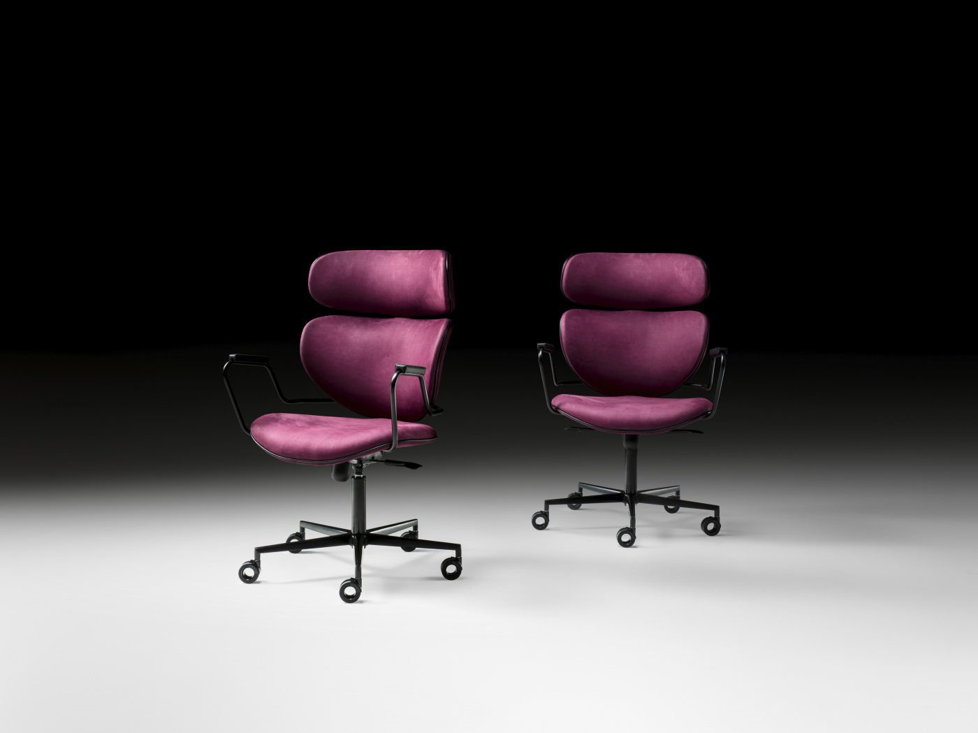 Praktyczny i elegancki: Asia Office to połączenie, które ma na celu wprowadzenie komfortu i prestiżu do Twojego miejsca pracy. Ergonomia systemu nachylania i podnoszenia, w połączeniu z pięcioma miękkimi kółkami, nadaje strukturze niezrównany dynamizm. Wysokiej jakości skóry, matowe podłokietniki w czerni oraz kolory BlackTie dopełniają całość kompozycji: ponieważ idee, które rodzą się otulone pięknem, prowadzą do wyjątkowych rezultatów.