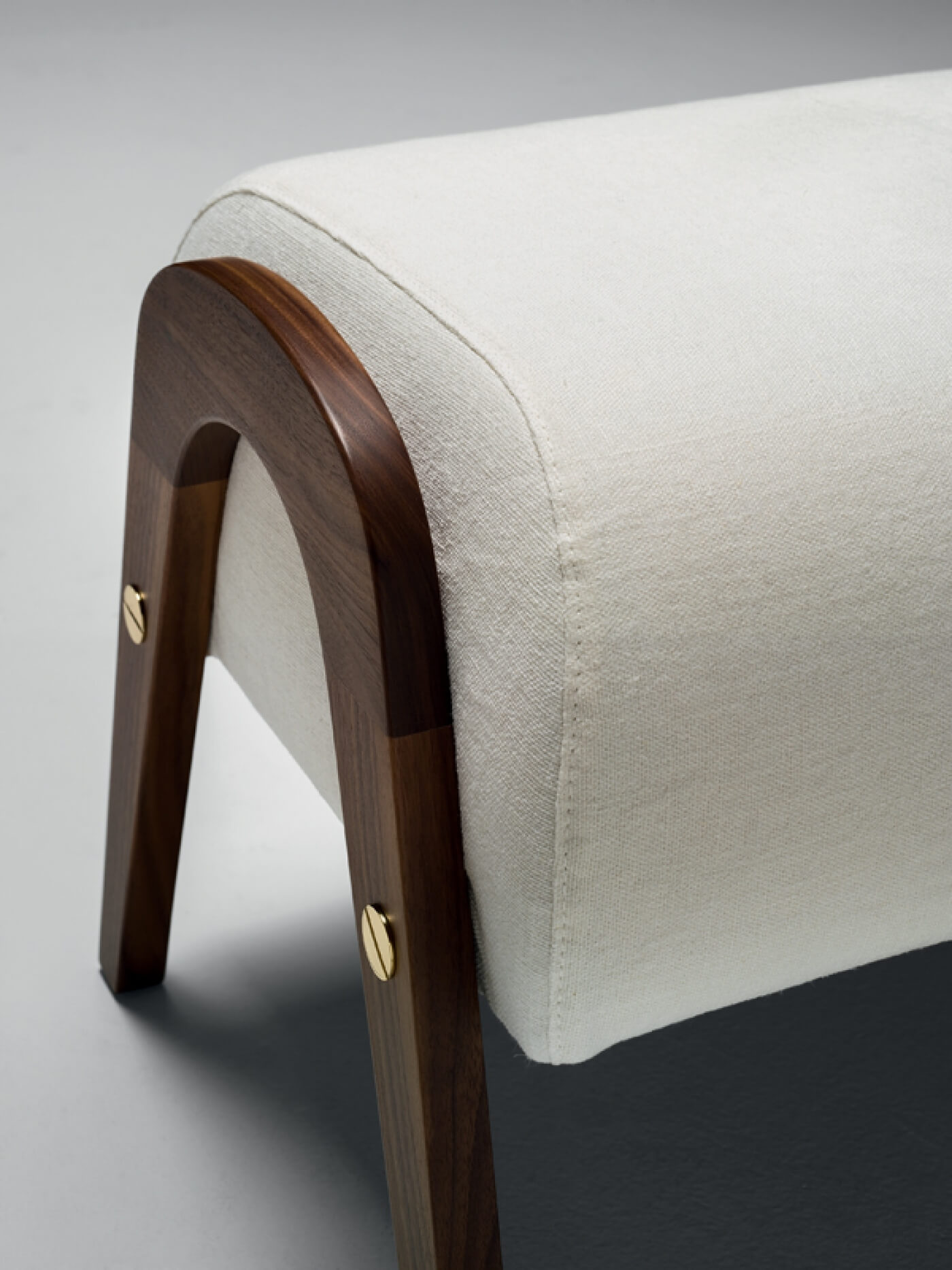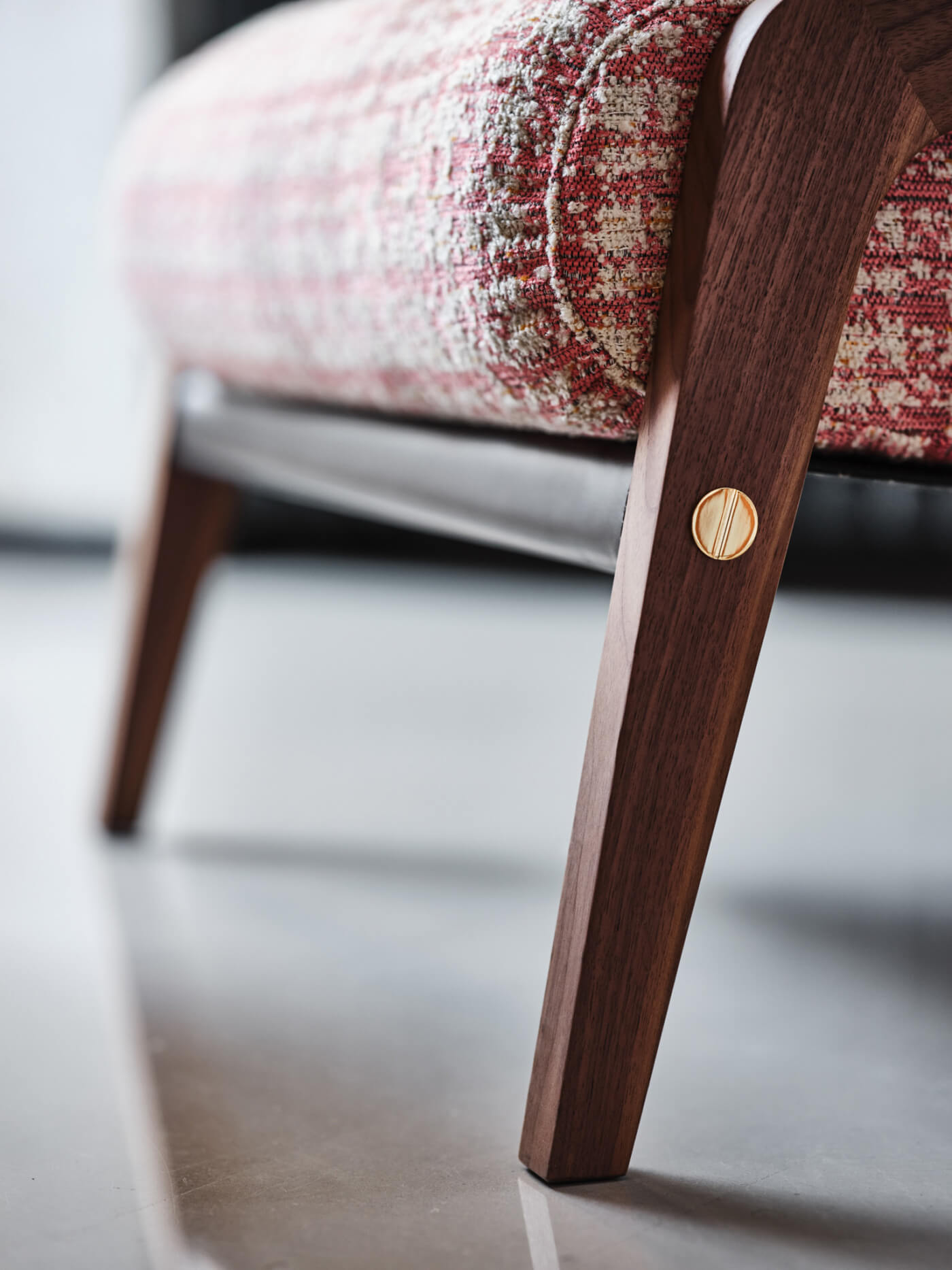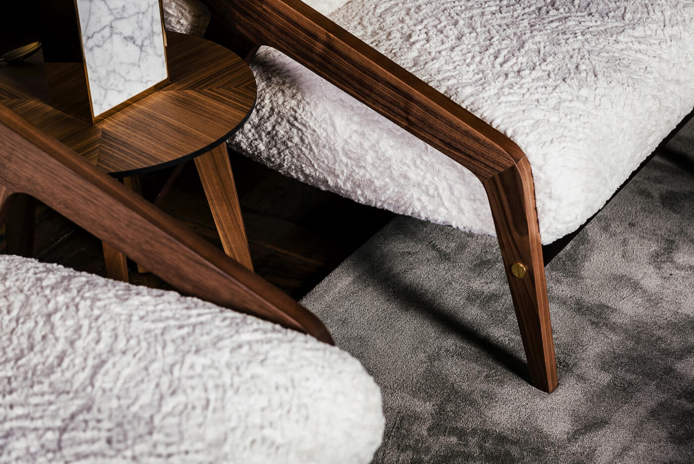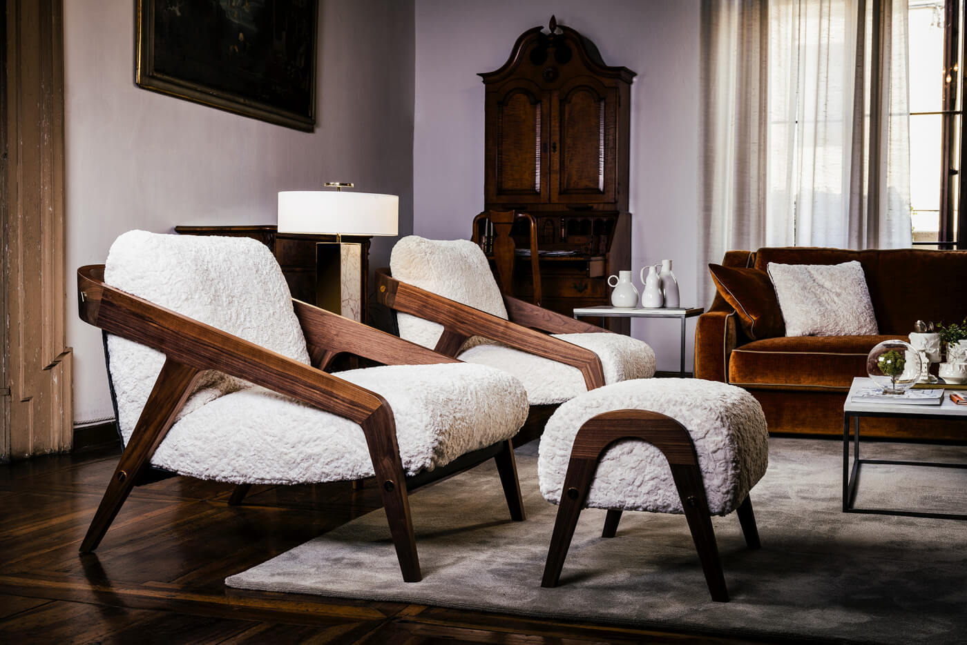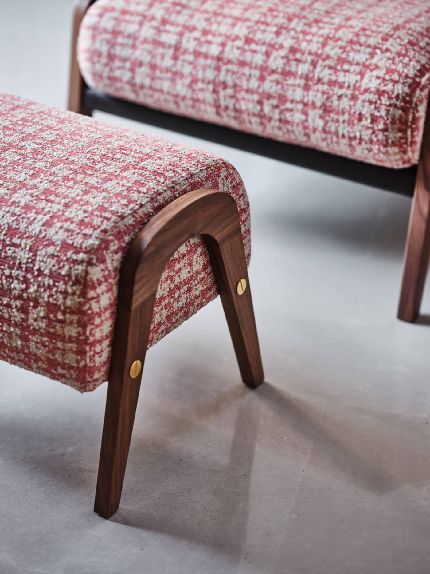 Fotel i puf zbudowane z litego drewna orzechowego Canaletto.