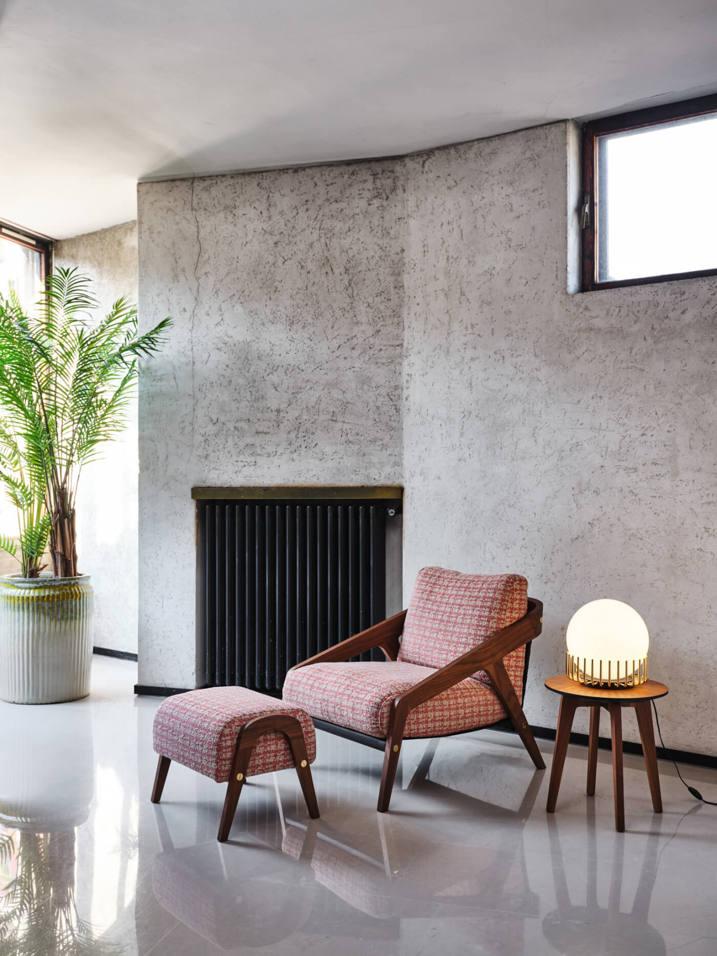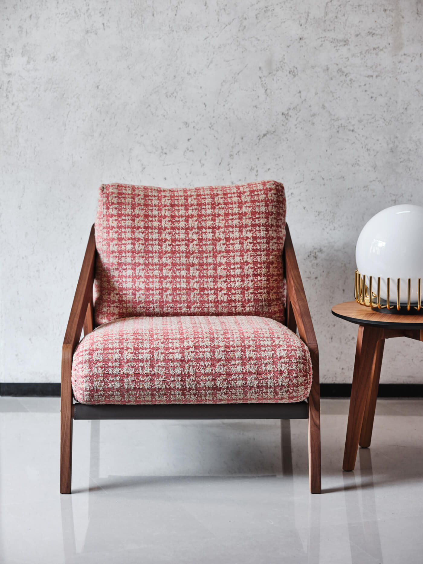 Frisè to fotel, który dzięki ręcznie plecionemu sznurowi z brązowej skóry staje się prawdziwym protagonistem w każdym wnętrzu. Wyraża niezwykłe poczucie spokoju i głębokiego relaksu, które potęgują poduszki siedziskowe wypełnione w 100% pierzem gęsim. Fotel doskonale wpasowuje się w każdą przestrzeń, nadając jej natychmiastową oryginalność oraz urodę. Mebel, który w swojej prostocie ujawnia całą złożoność włoskiego rzemiosła oraz wartość użytych materiałów.