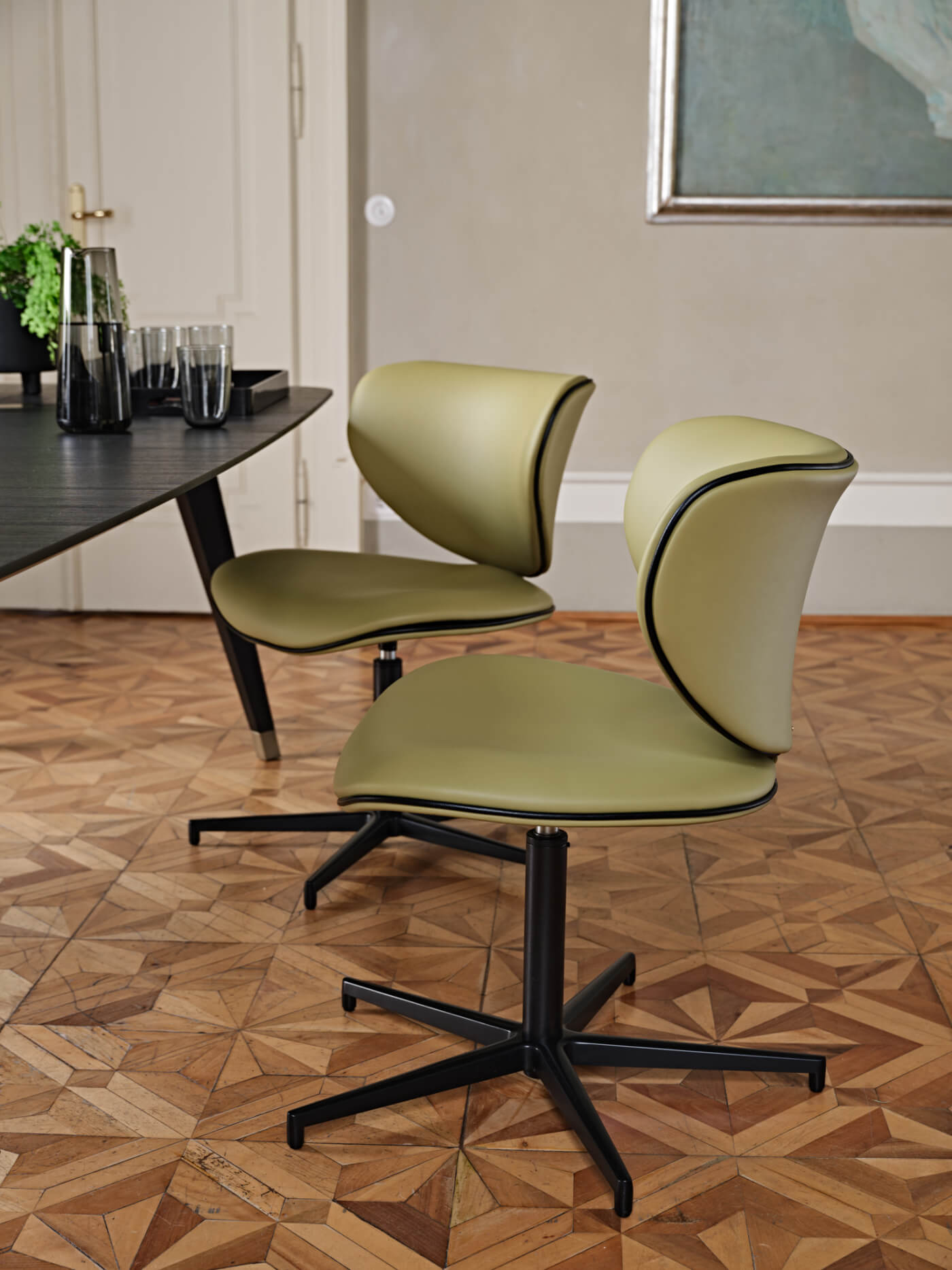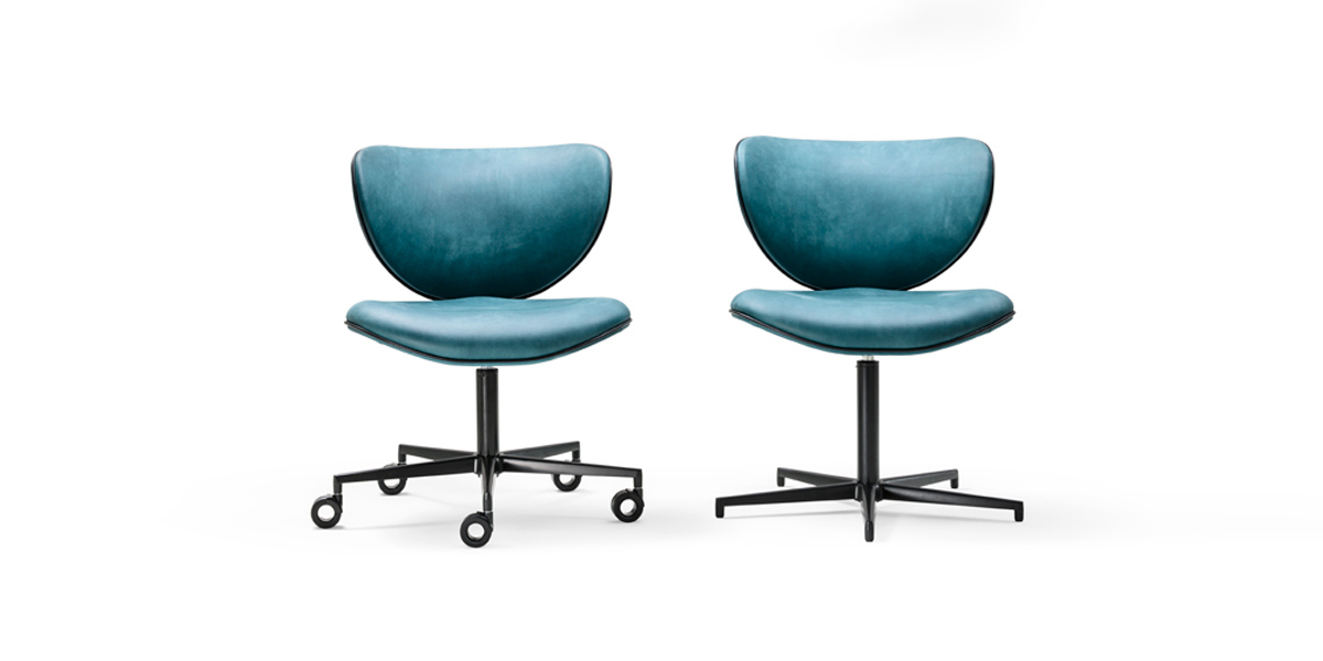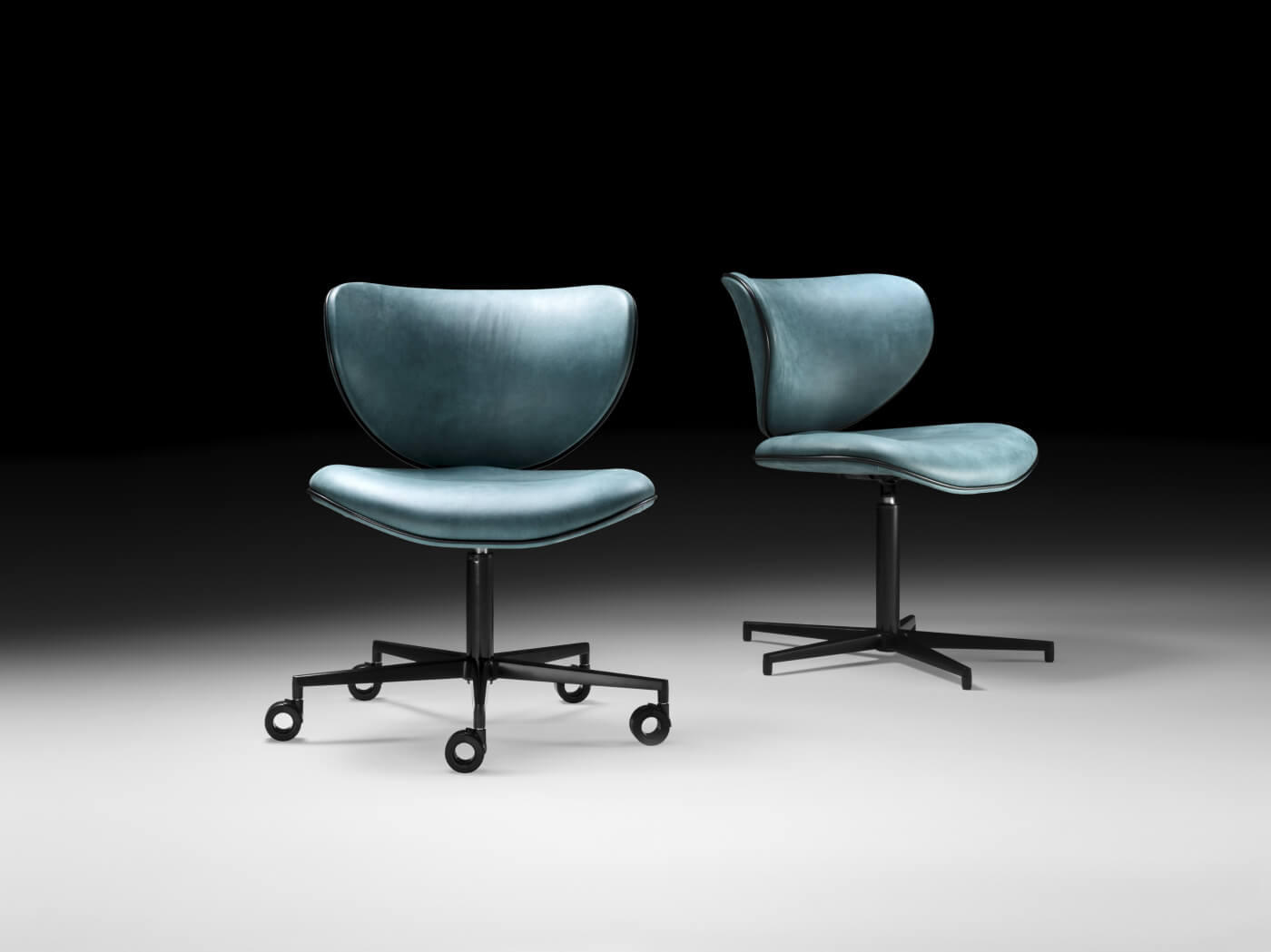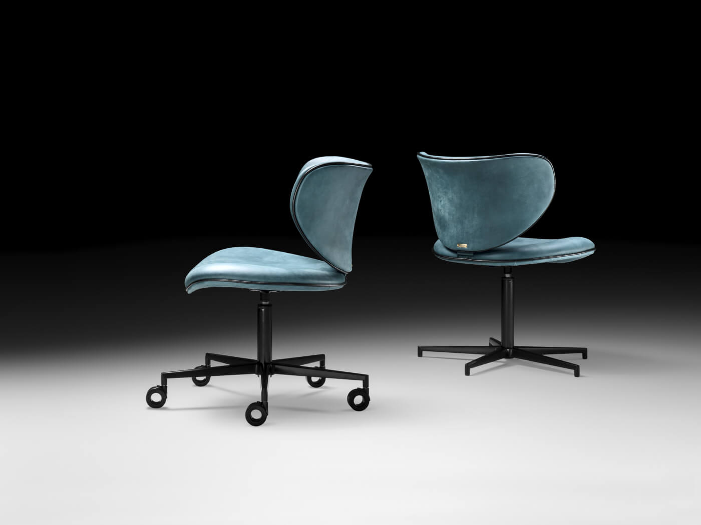 Szlachetna i funkcjonalna — w tej wersji system Kalida osiąga maksimum praktyczności, zaprojektowany z myślą o strefach biznesowych, przestrzeniach kontraktowych i domowym biurze. Fotel może występować z miękkimi kółkami lub bez (opcjonalne dla pięcioramiennej podstawy), a elegancję podkreślają wyszukane kompozycje tkanin w charakterystycznym stylu BlackTie.