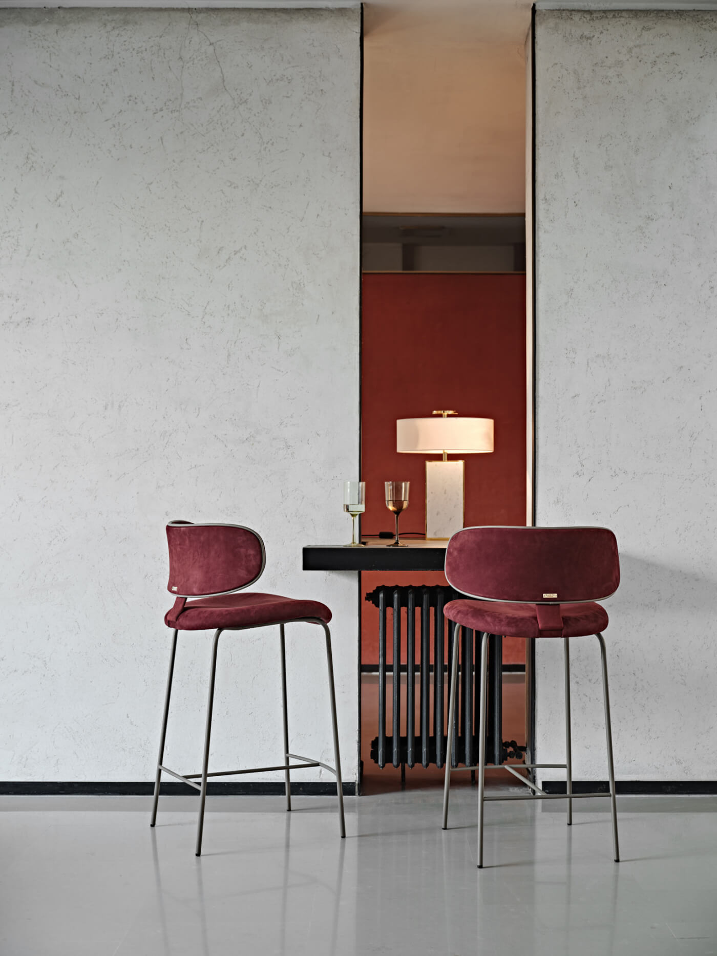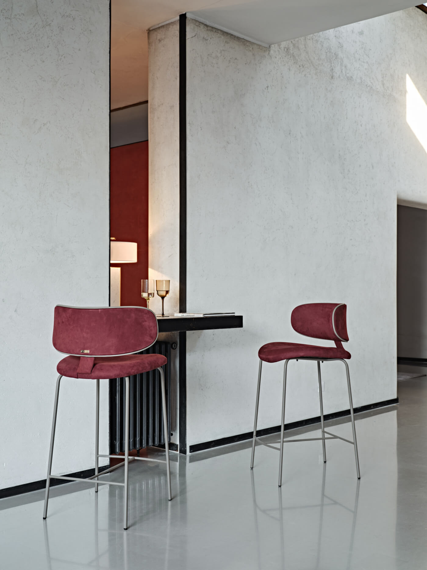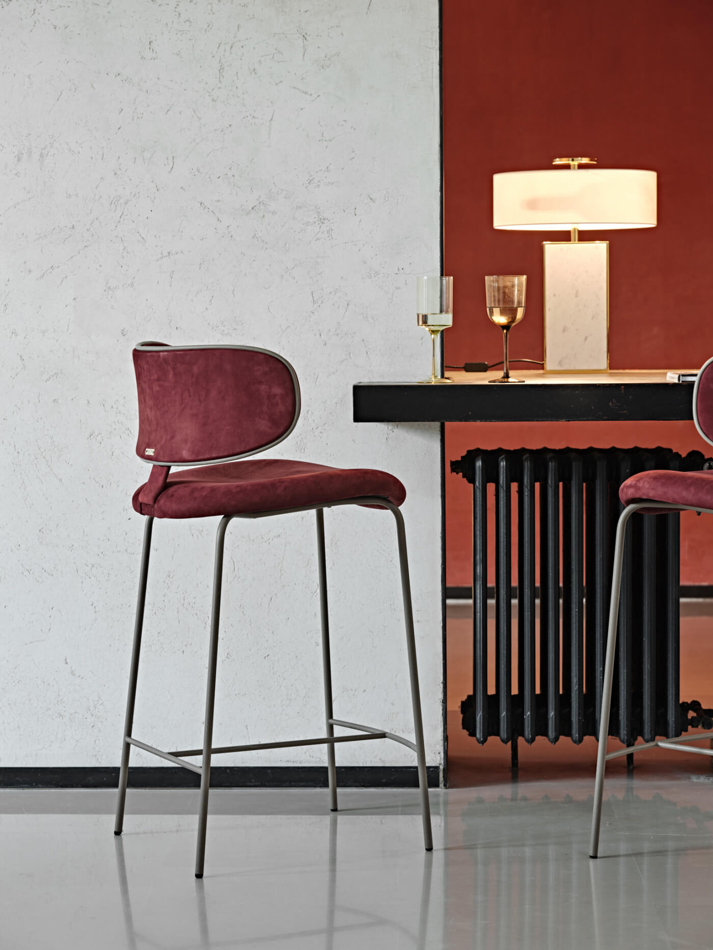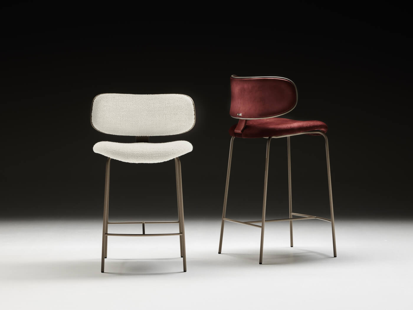 Prostota w najczystszej formie: Natalia to gra zarysu i materiału. Delikatnie pochylone siedzisko harmonijnie współgra z oparciem, które subtelnie otula i wspiera. Szlachetne tkaniny i skóry — dostępne w szerokiej gamie wykończeń — podkreślają charakter projektu, a detale z ekoskóry elegancko korespondują z malowaną, metalową ramą. Efekt to hoker o wyważonej, współczesnej elegancji, idealny do przestrzeni gastronomicznych, biurowych i domowych wysp kuchennych.