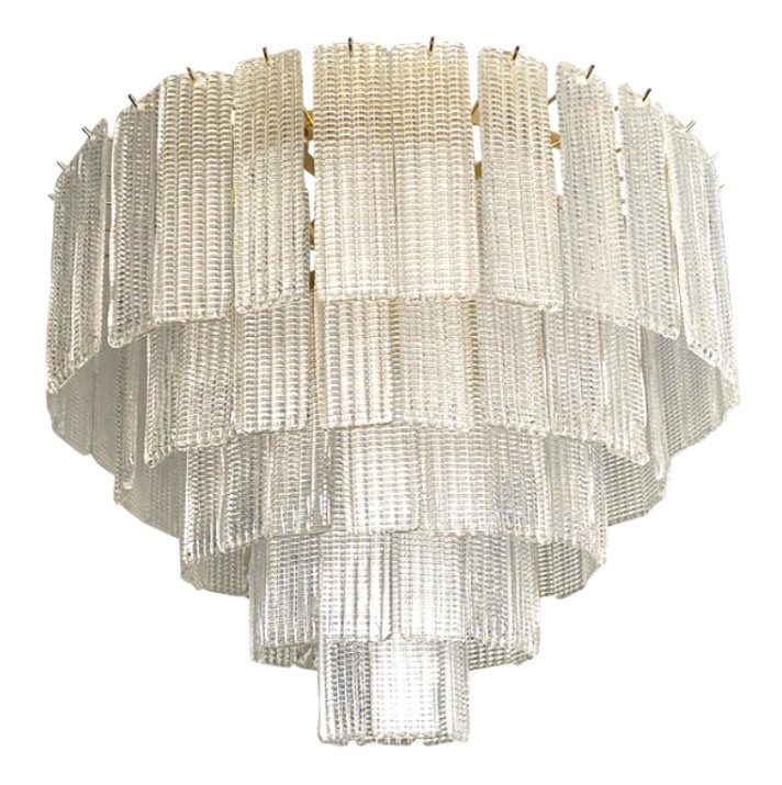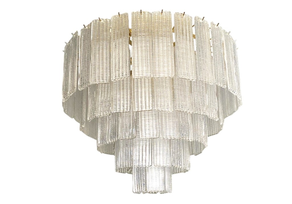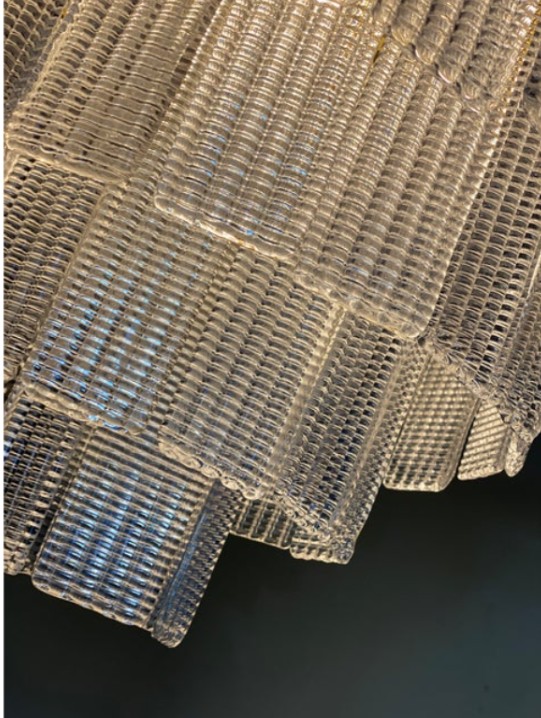 To imponująca konstrukcja w pięciu poziomach, złożona z prostokątnych elementów “Listelli”, wykonanych z przezroczystego szkła Murano metodą “piastra” (na płycie), zgodnie z tradycyjną wenecką techniką.