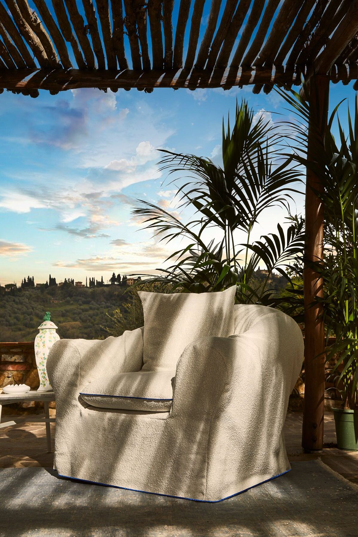 Martingale to współczesna reinterpretacja fotela Chesterfield, zaprojektowana tak, aby zapewniać styl i komfort także na świeżym powietrzu. Miękkie, otulające linie, wyraziste kolory i proporcje łączą się w doskonałą równowagę między designem a funkcjonalnością.