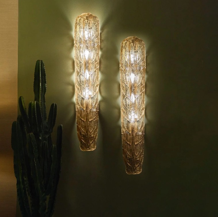 Zrób efektowne wrażenie w swoim domu dzięki temu wyjątkowemu kinkietowi, który oddaje hołd odważnej elegancji kapelusza Panama i ponadczasowemu urokowi szkła Murano. Konstrukcja wykonana jest z mosiądzu i podtrzymuje kaskadę wydłużonych, zakrzywionych elementów szklanych, dmuchanych ręcznie we Włoszech przy użyciu tradycyjnych technik Murano. Ciepłe bursztynowe odcienie szkła podkreślają delikatne akcenty z ręcznie malowanej porcelany ze 24-karatowego złota, tworząc promienny i wyrafinowany blask. Dzięki rzeźbiarskiej sylwetce i starannie dobranym materiałom, kinkiet Panama wnosi luksusowy akcent do każdego nowoczesnego lub klasycznego wnętrza.