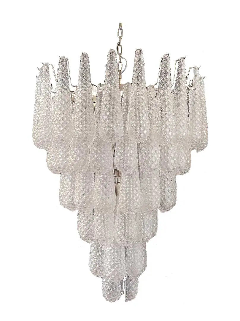 Żyrandol składa się z 75 przezroczystych szklanych elementów, które tworzą formę przypominającą szyszkę. Kaskadowa konstrukcja zawieszona jest na metalowej ramie.