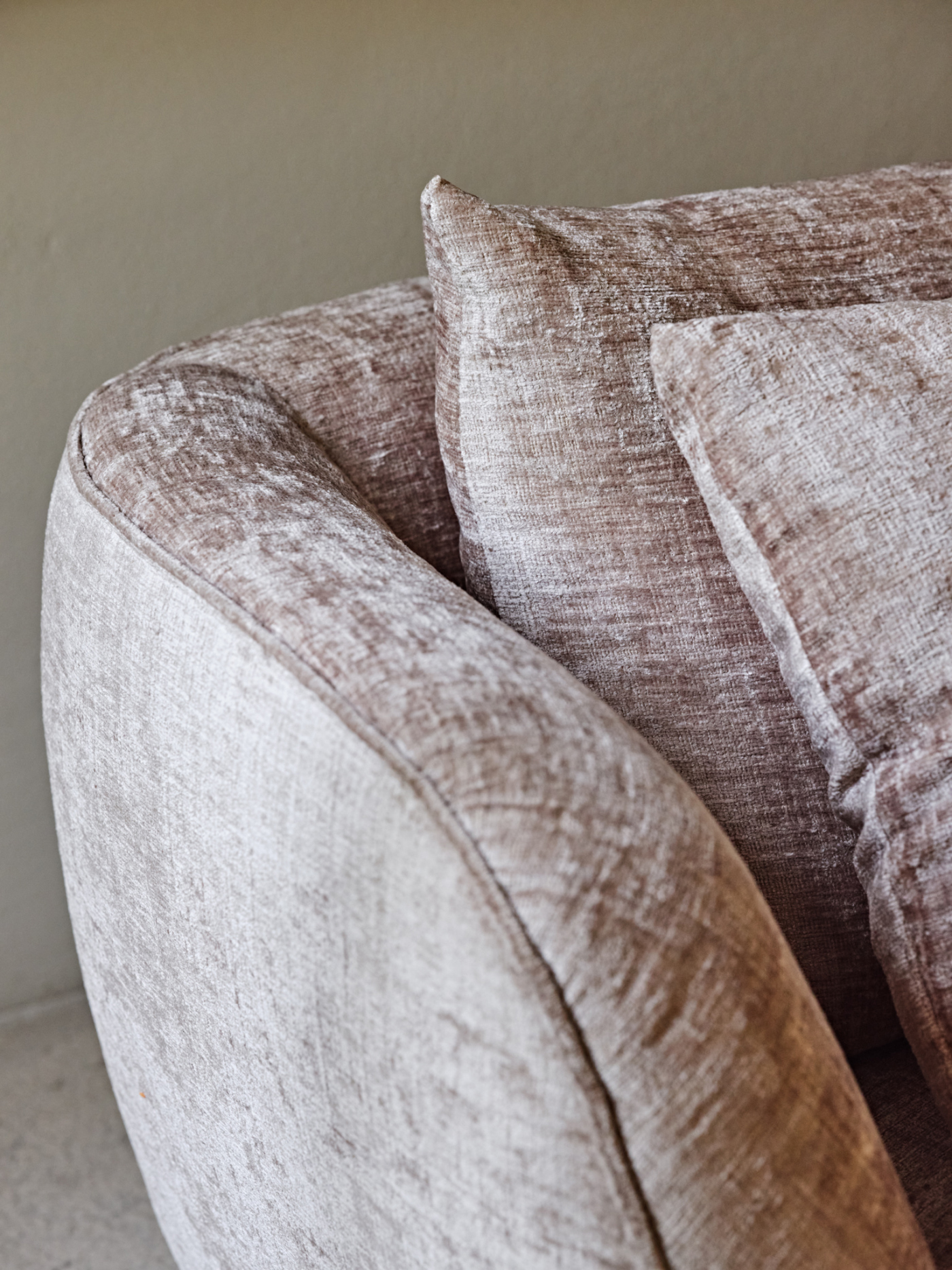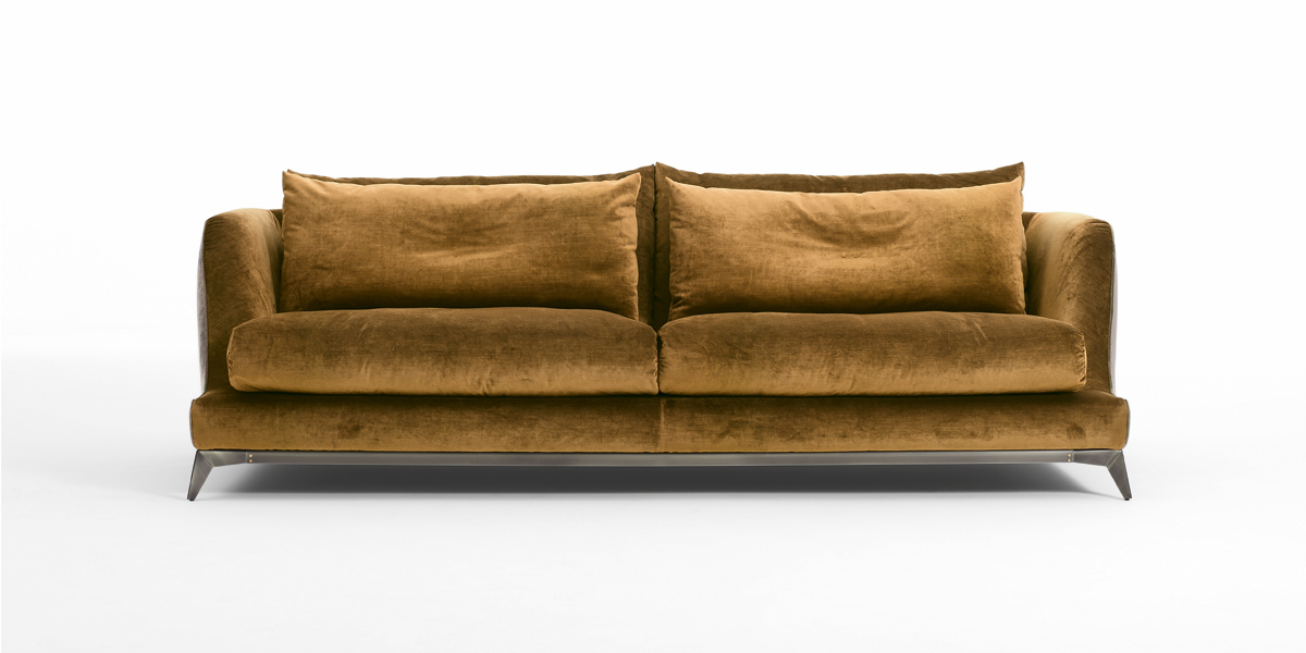 Minimalistyczna, metalowa podstawa o wyrazistych liniach kontrastuje z zaokrąglonymi kształtami poduszek siedziskowych i oparcia, tworząc harmonijną całość. Brando to uosobienie swobodnej elegancji — sofa, która dzięki idealnym proporcjom i ponadczasowemu wzornictwu z łatwością wpisze się w każdą przestrzeń, stając się jej sercem na długie lata.