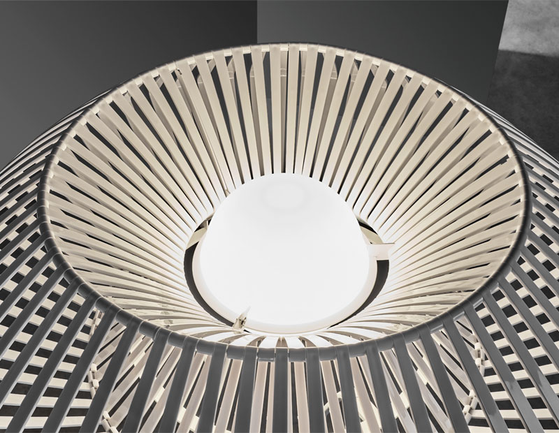 Dzięki zastosowaniu technologii wtrysku tworzyw sztucznych powstała rodzina opraw oświetleniowych, których listwy, ułożone w geometryczne kompozycje, przenoszą nas w oniryczny, niemal baśniowy świat.