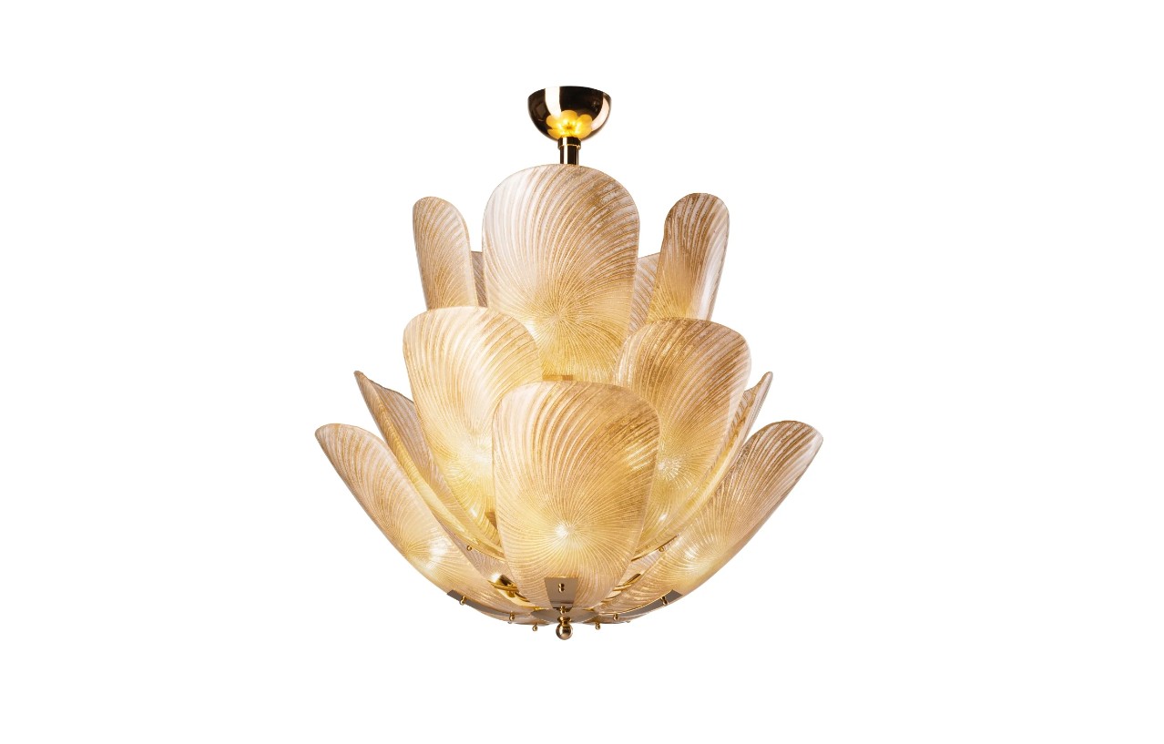 Materiał: mosiądz pokryty 24-karatowym złotem, szkło Murano.