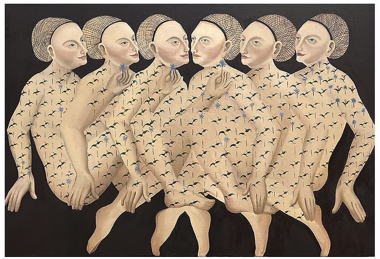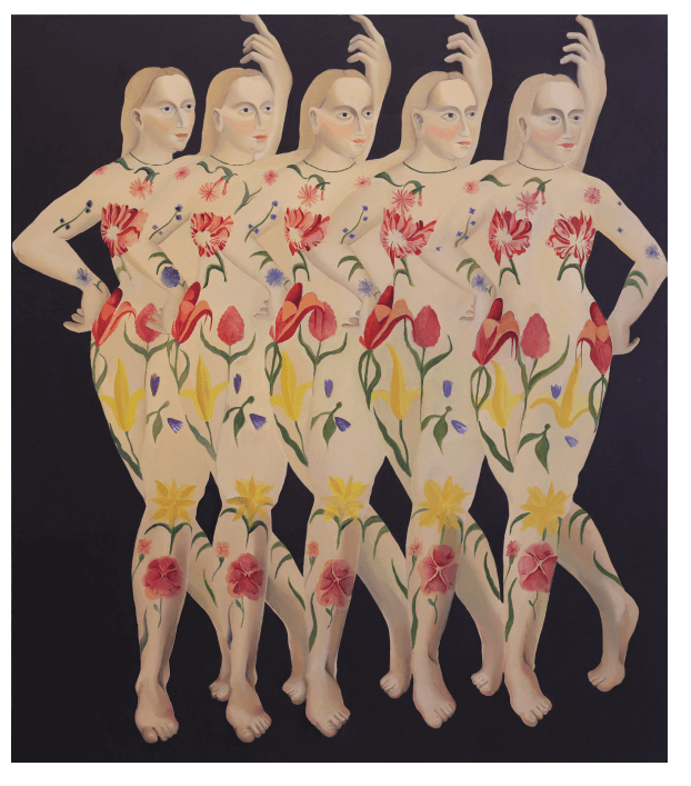 Zrytmizowane orszaki kobiet, niczym w symultanicznym tańcu, najczęściej lewitują